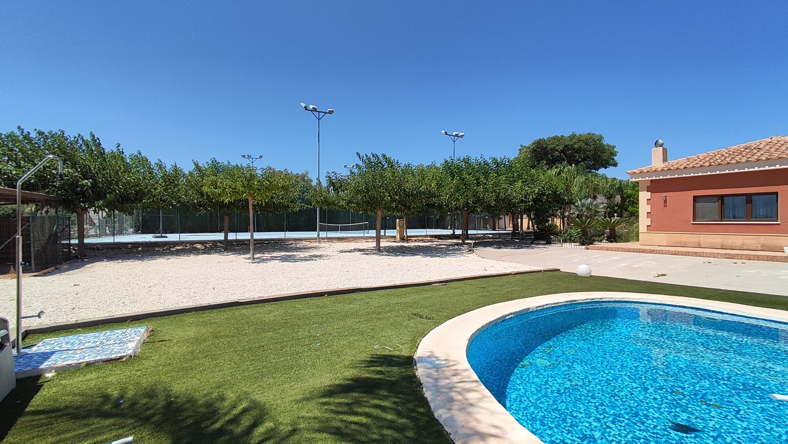 Vivienda unifamiliar de lujo con situada en una parcela de unos 8.000 metros cuadrados con pista de tenis, piscina, amplio jardín, casa anexa para fiestas o reuniones, dos barbacoas y una terraza con bonitas vistas. Todo en una planta a pie de suelo, sin escaleras ni alturas.