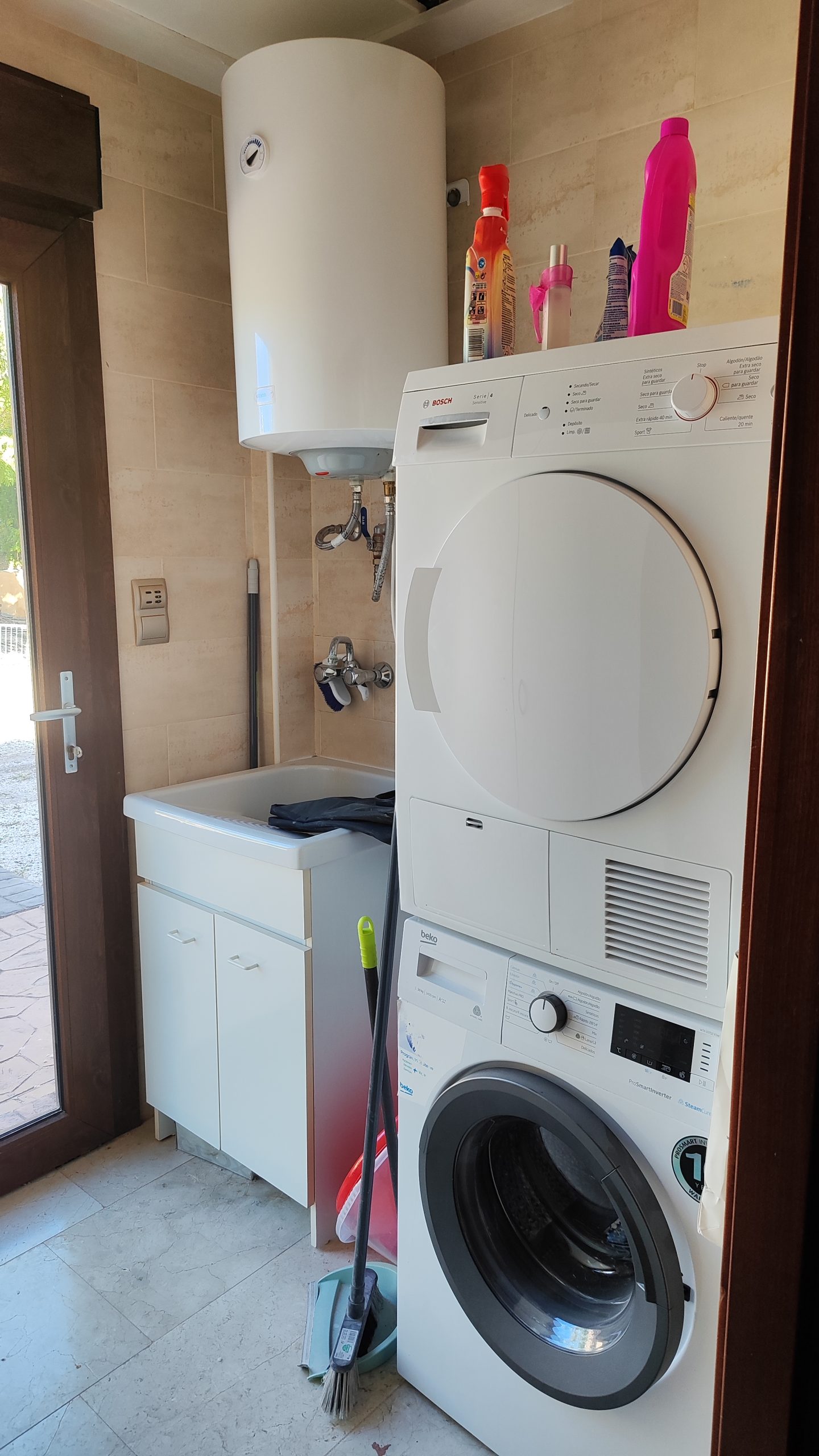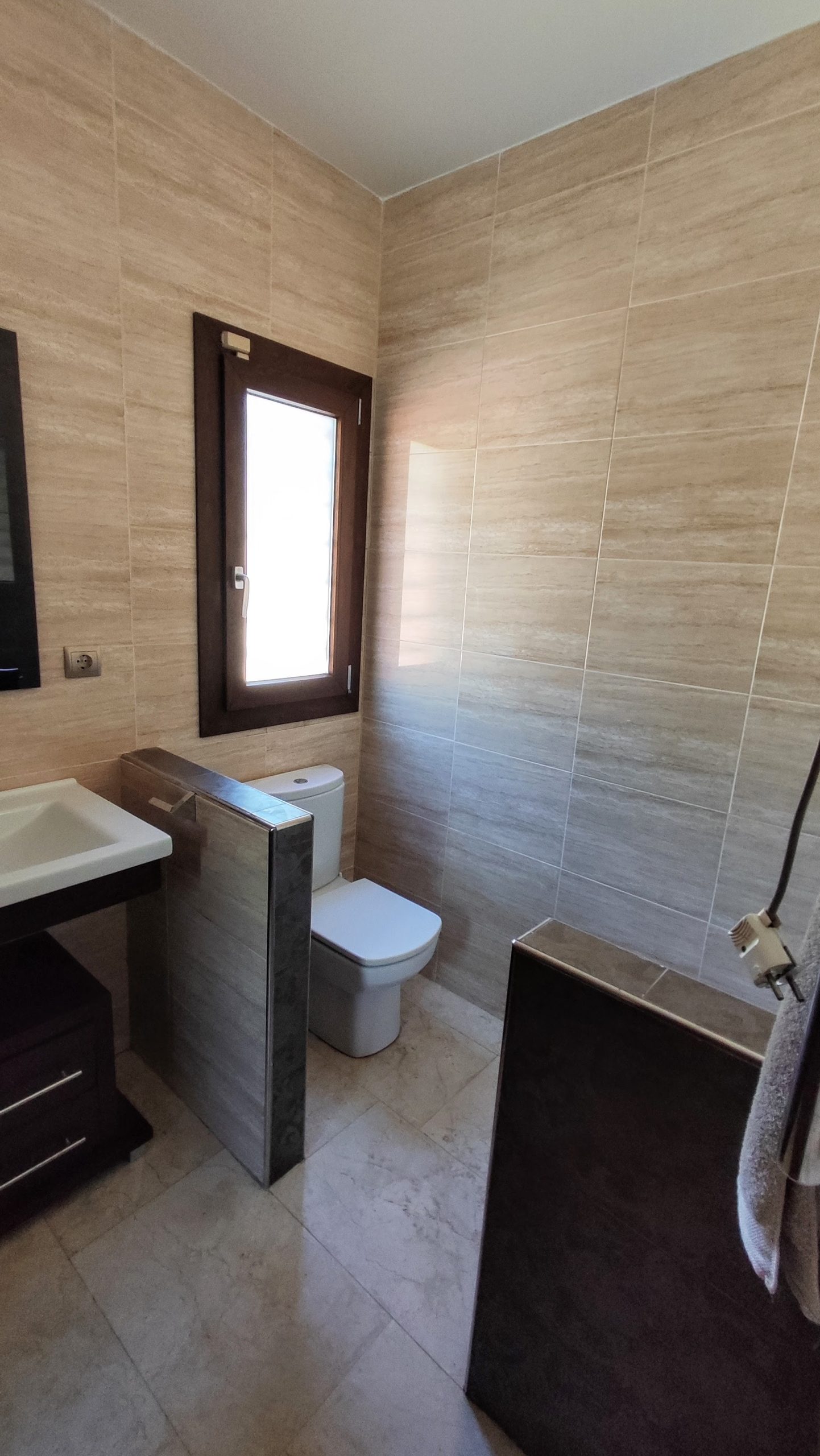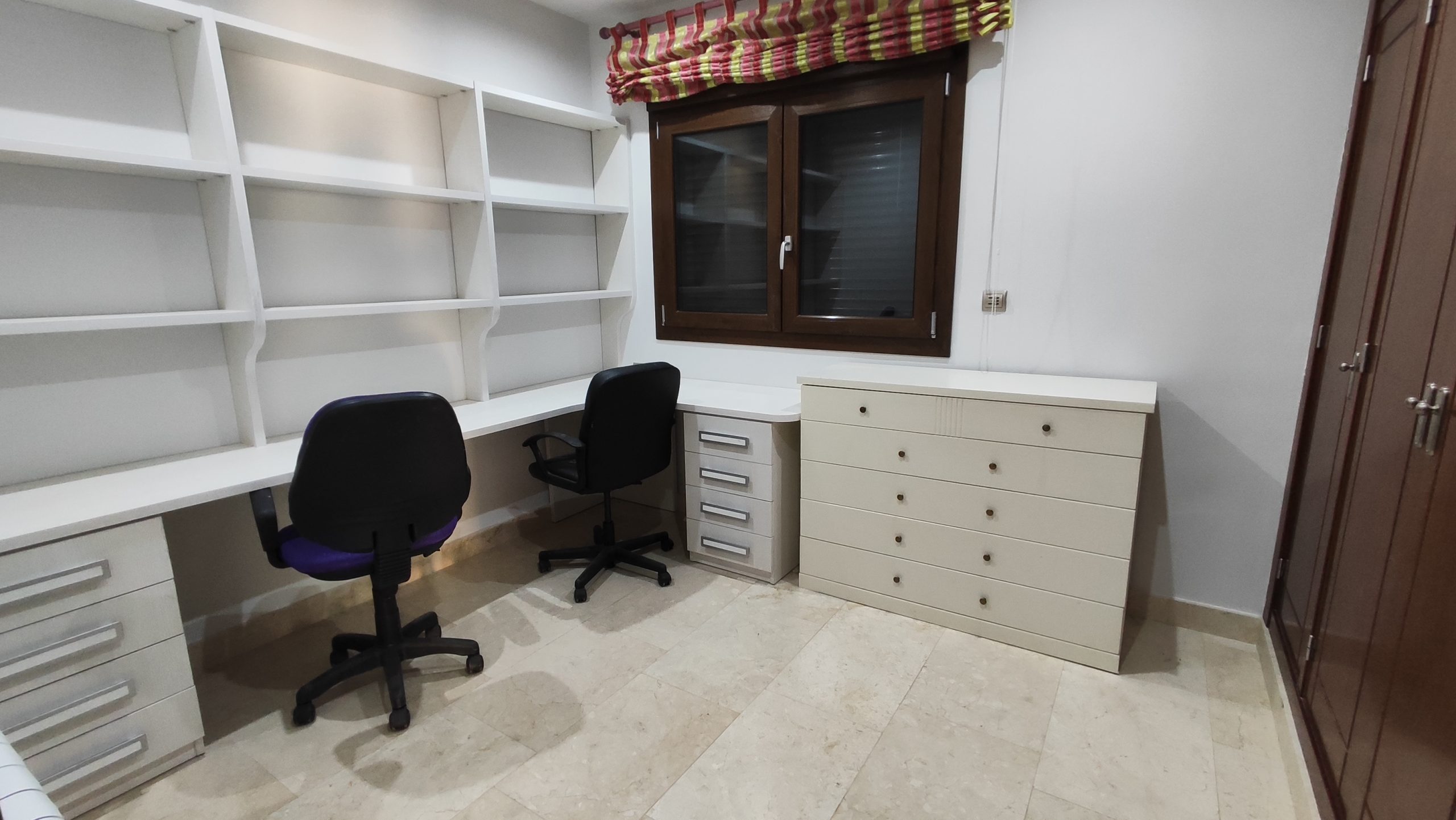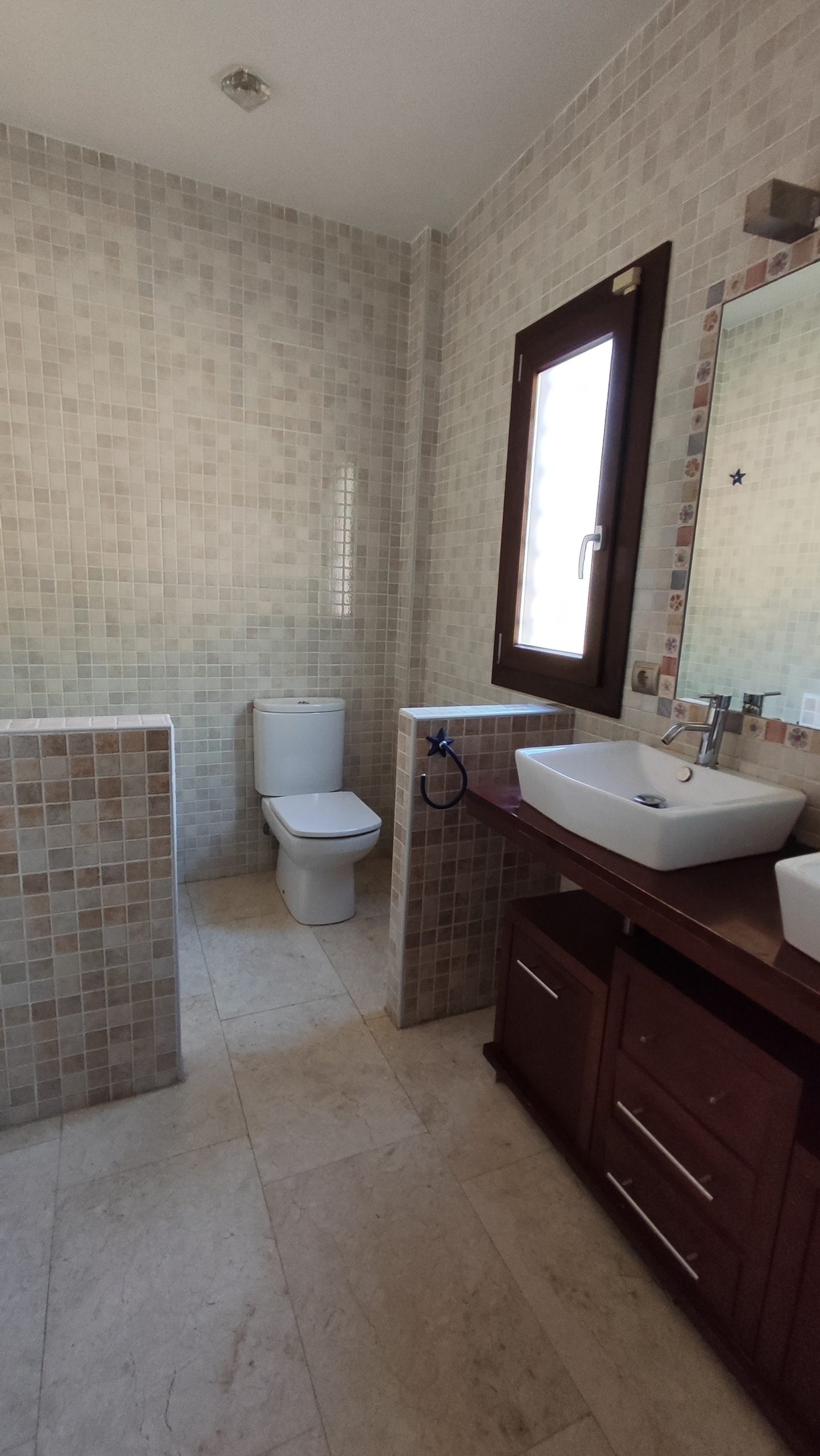 Casa principal de 200 metros con cuatro dormitorios, espectacular salón muy luminoso, aseo de cortesía, dos baños completos, uno en suite, cocina y galería. Dotada de radiadores para calefacción y aire acondicionado frio/calor por conductos. Armarios empotrados en habitaciones y pasillos. Persianas eléctricas de seguridad.