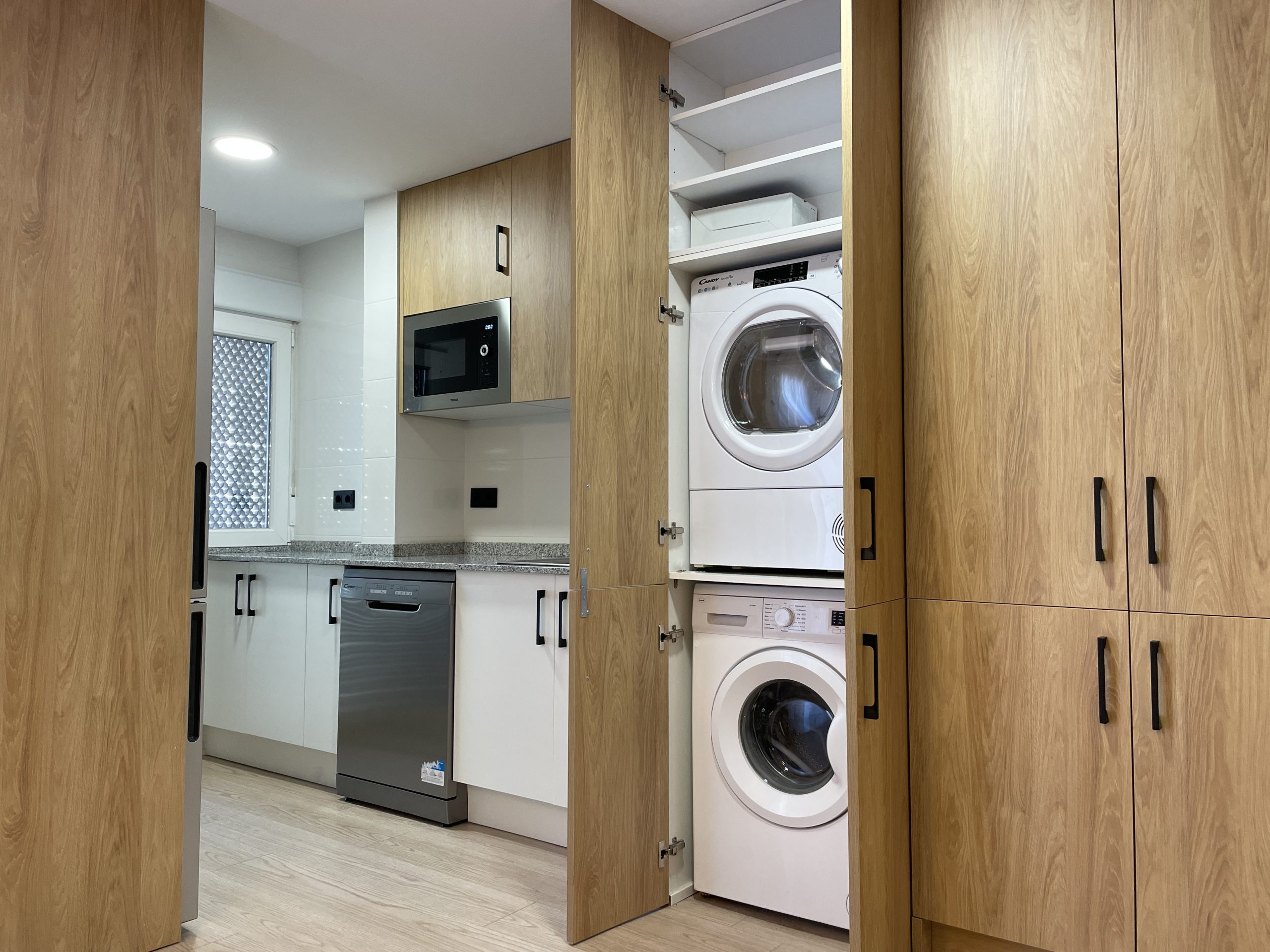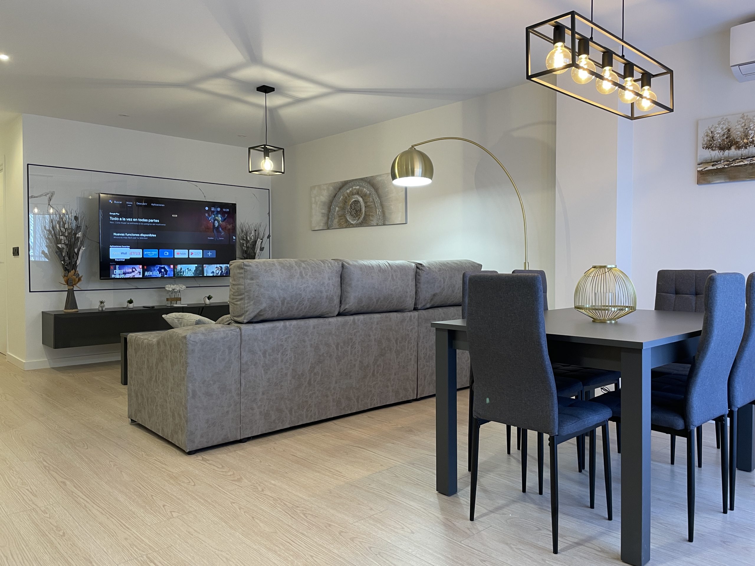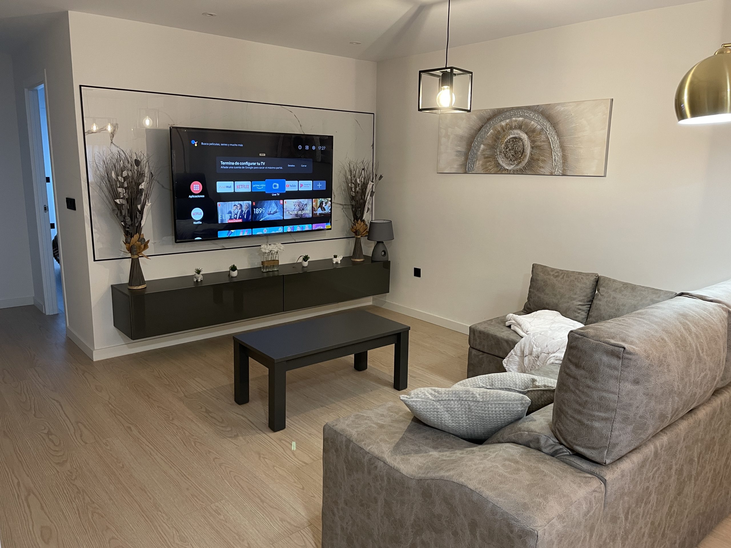 Reforma integral finalizada en enero de 2023 y equipado con lavavajillas, lavadora, secadora, frigorífico, horno, encimera, microondas. Televisor de 65 pulgadas en el salón y de 43 en habitaciones.